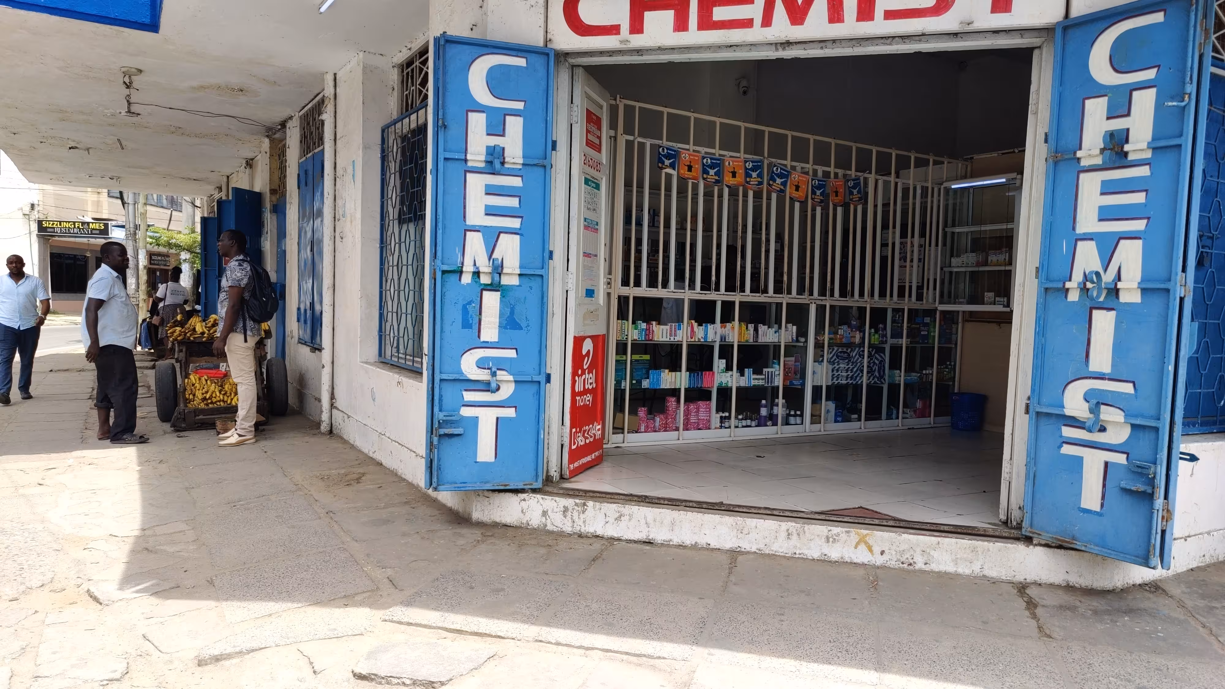 Grating at a chemist shop in Mombasa, Kenya