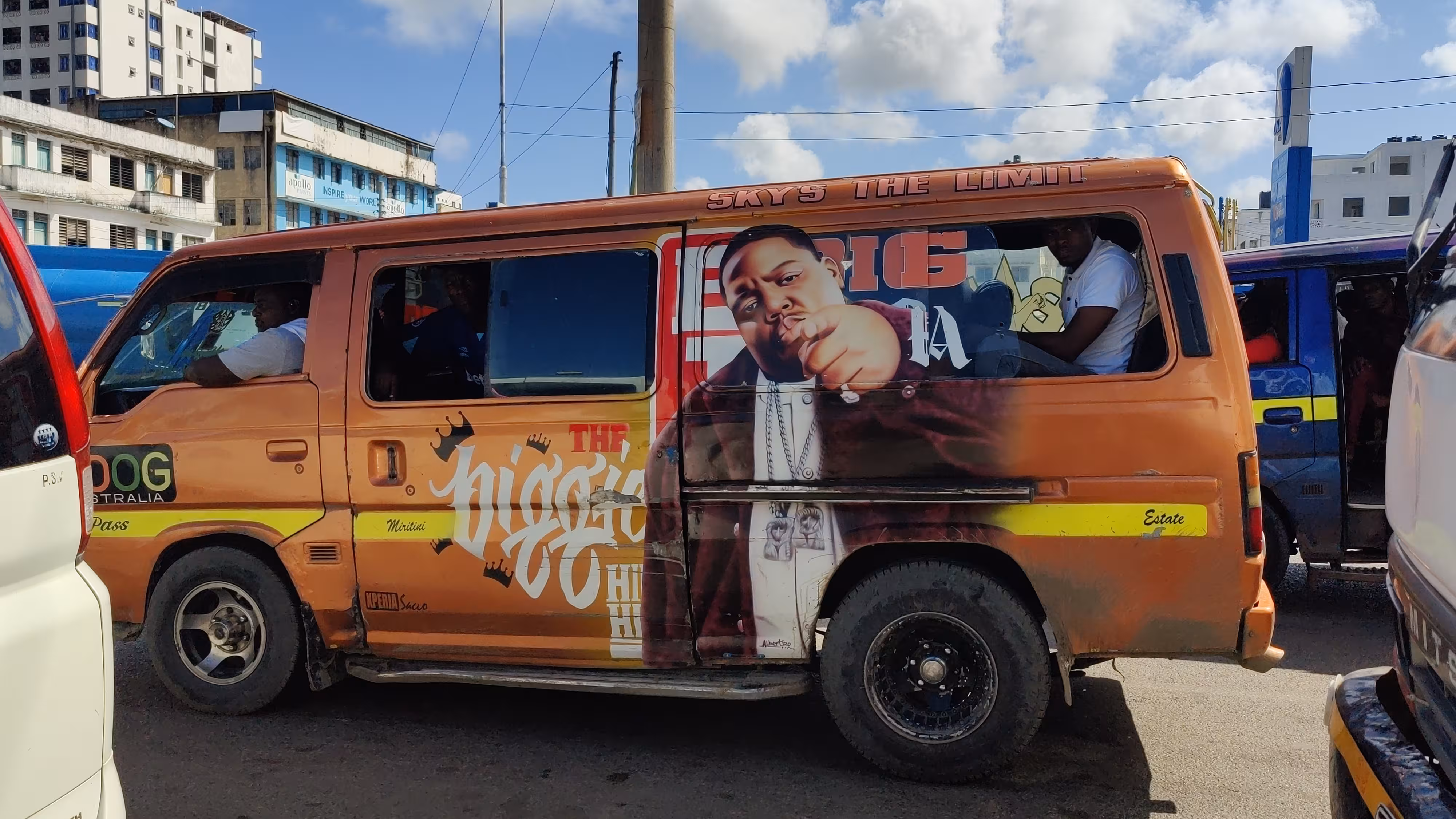 A matatu with a Notorious BIG portrait.