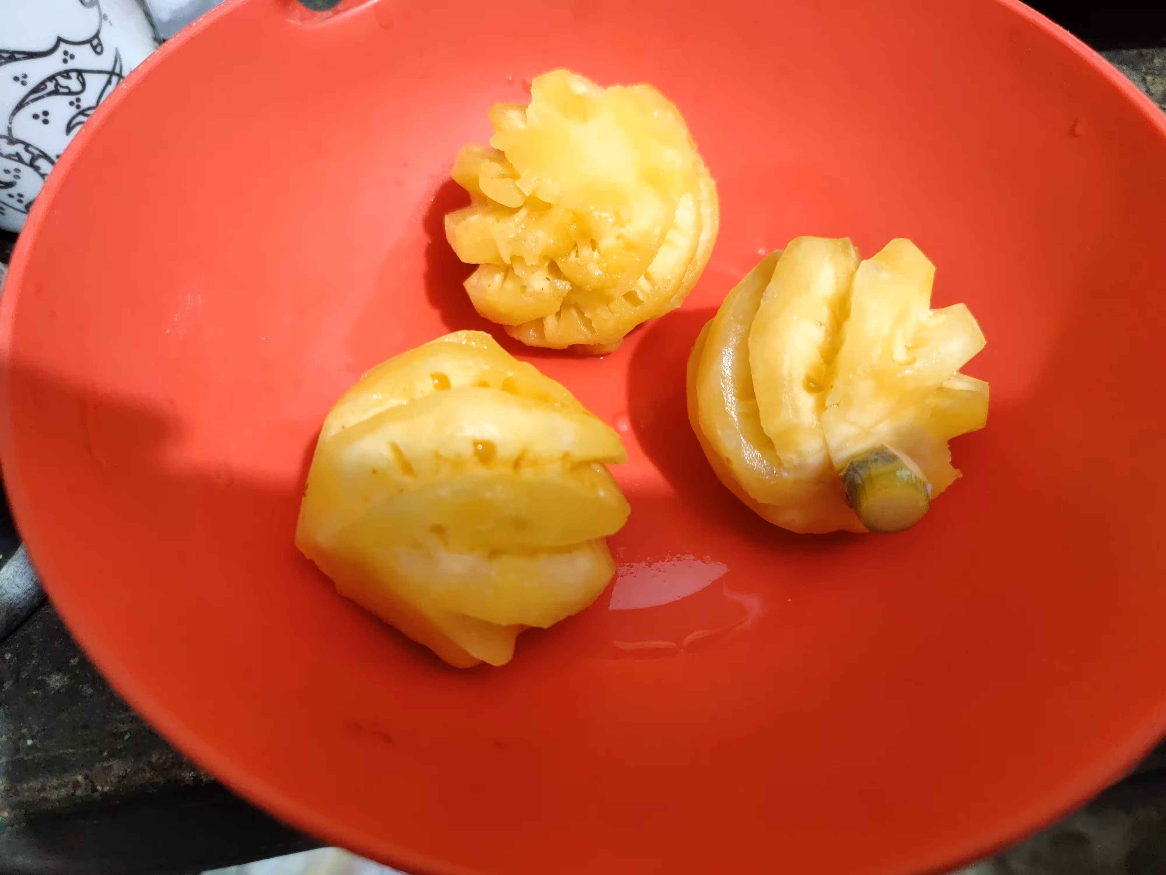 In the evening, I went to a shop which was selling fruits like guavas, dragon fruits, mangoes. I sampled guavas, which I found tasty and got mangoes and dragon fruits packed for eating later, and they were yummy.