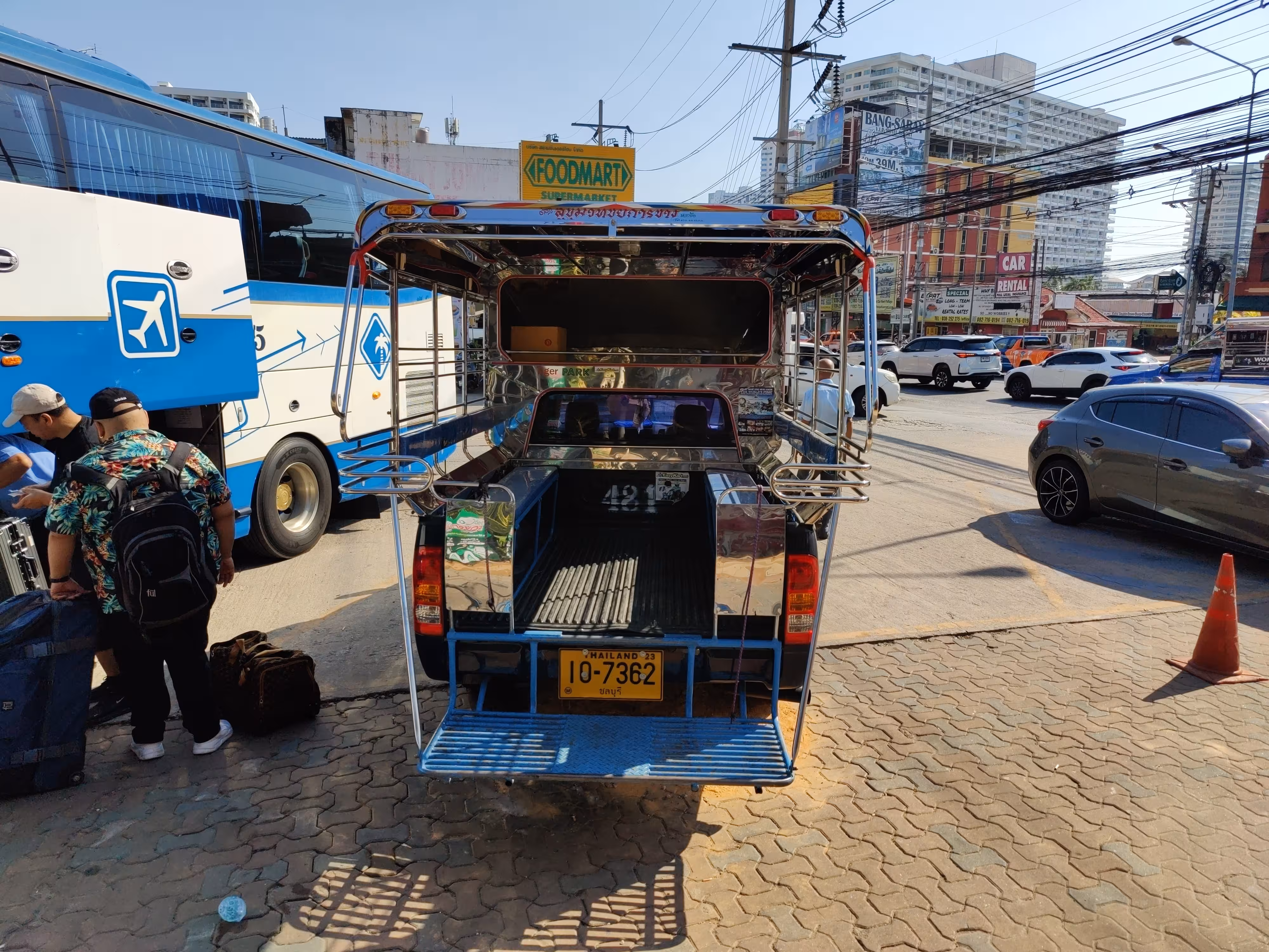After some time, I realized that the address mentioned on the hostel receipt was different from the one OpenStreetMap was showing, leading me to ask a person sitting at a café for help. That person agreed to help me and took me to the exact place where the hostel was. On the way, he told me he was originally from Kuwait but lived in Pattaya for many years. He also told me about the shared hail-and-ride cheap songthaew rides which ran along the Jomtien Beach, charging 10 Baht (25 Rupees) for any distance along that route, making our trip cost-effective.